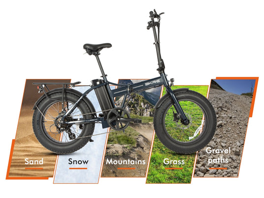 Whether it's traversing sandy beaches, snowy trails, mountain paths, cruising through parks, heading to the office, or riding on straight roads, the eBike equipped with 20*4.0 fat tires easily meets the challenge.