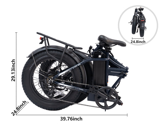 E-FAT-MN can be folded and stored in a car trunk. Its folded dimensions are 39.76× 24.8× 29.13 inches.