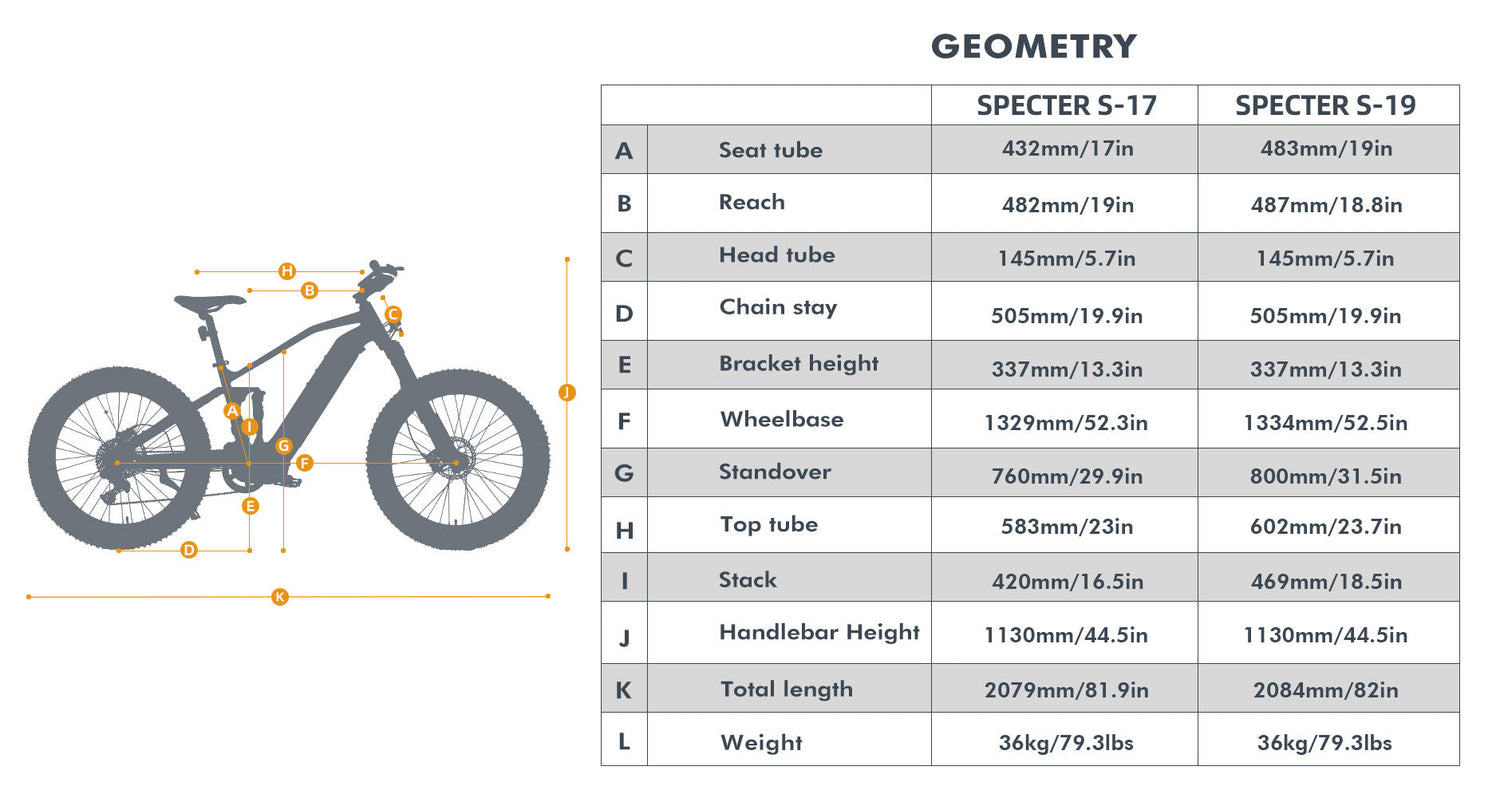 The 26" Fat Tire Model Specter S 1000W E-Bike Specifications